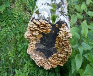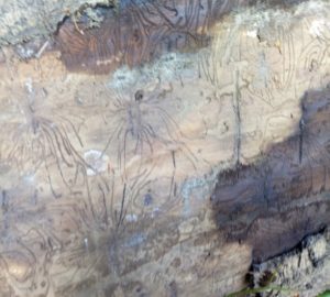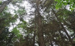 Wędrując po rezerwacie widzieliśmy świerki zaatakowane przez kornika (fot. powyżej – ślady na pniu). Kornik atakuje jedynie stare i osłabione świerki. To zjawisko powtarza się regularnie co jakiś czas. To jest naturalny element życia ekosystemu.