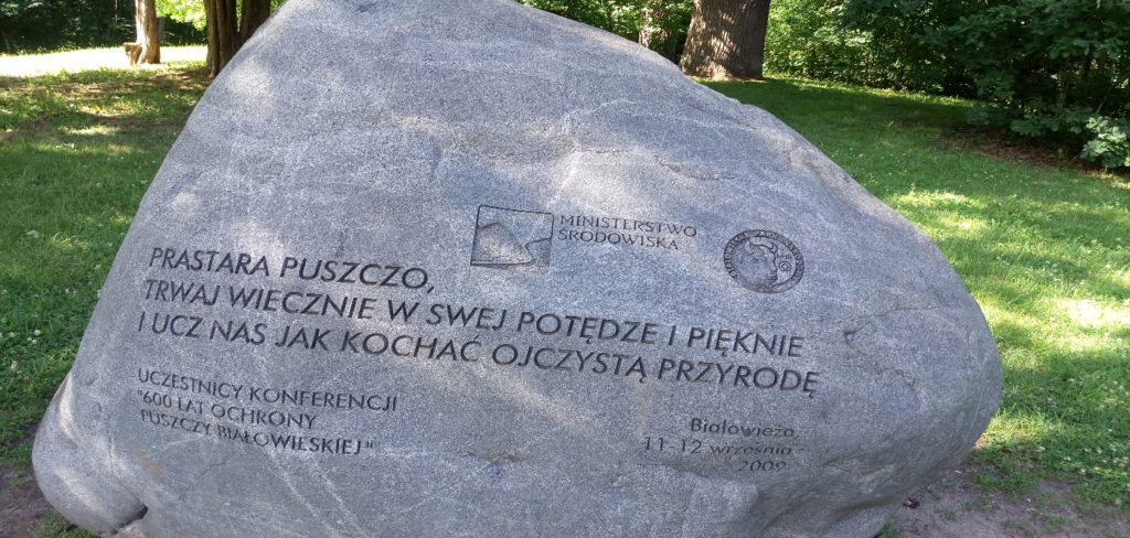 Kamień pomnikowy postawiony w Białowieży w 2009 roku w 600 lecie Ochrony Puszczy Białowieskiej
