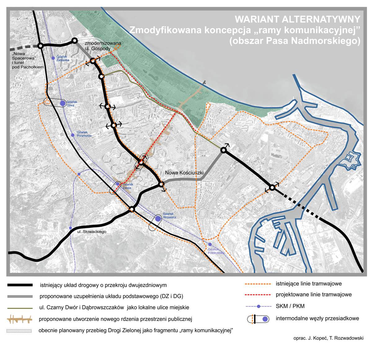 Schemat alternatywnej możliwości domknięcia „ramy komunikacyjnej” wokół śródmieścia Gdańska